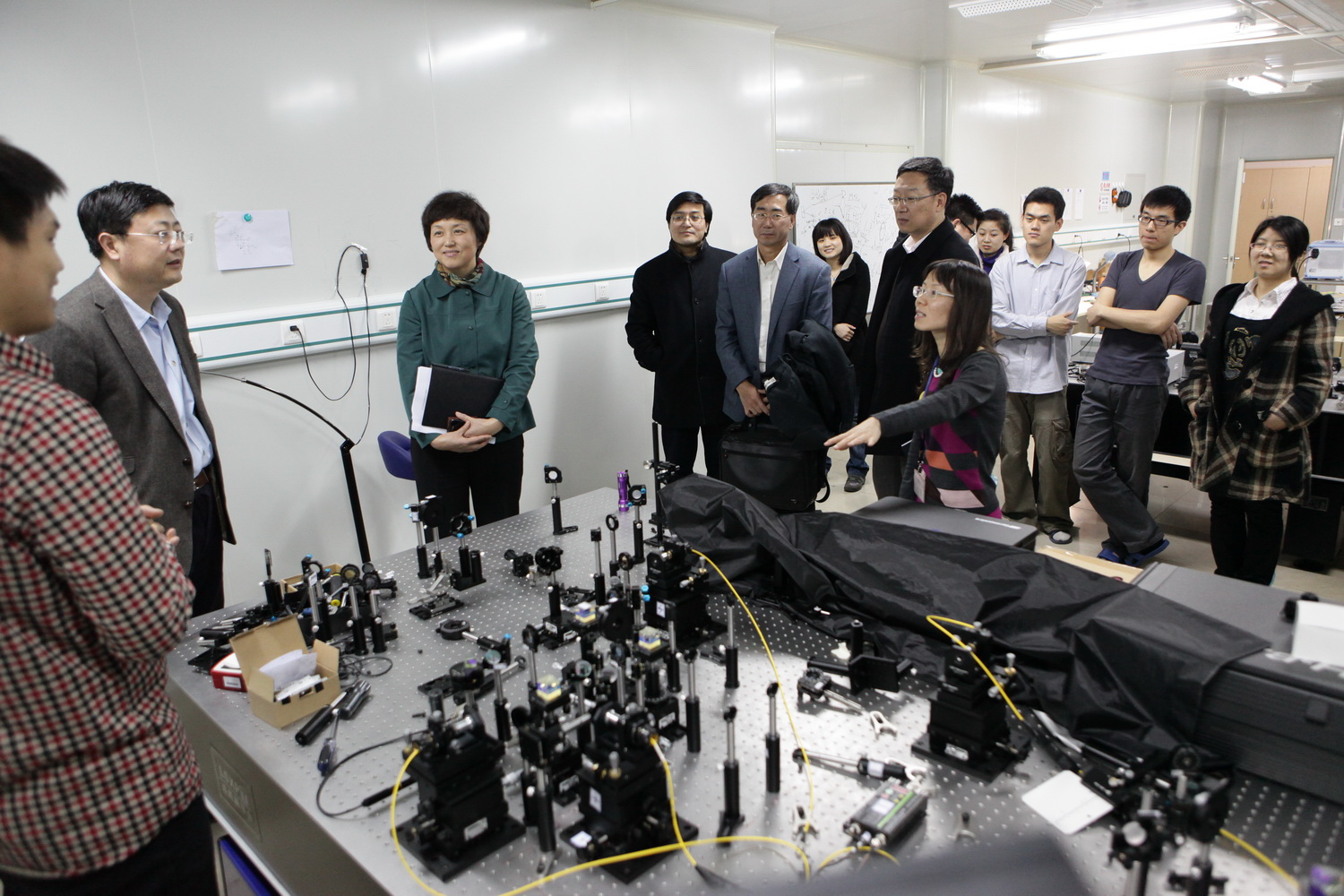陈吉宁校长(左二)、陈旭常务副书记(左三)等调研量子信息中心实验室