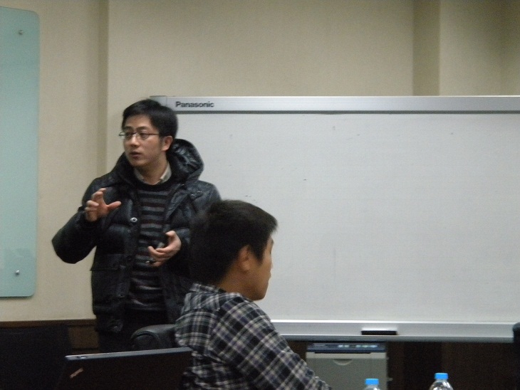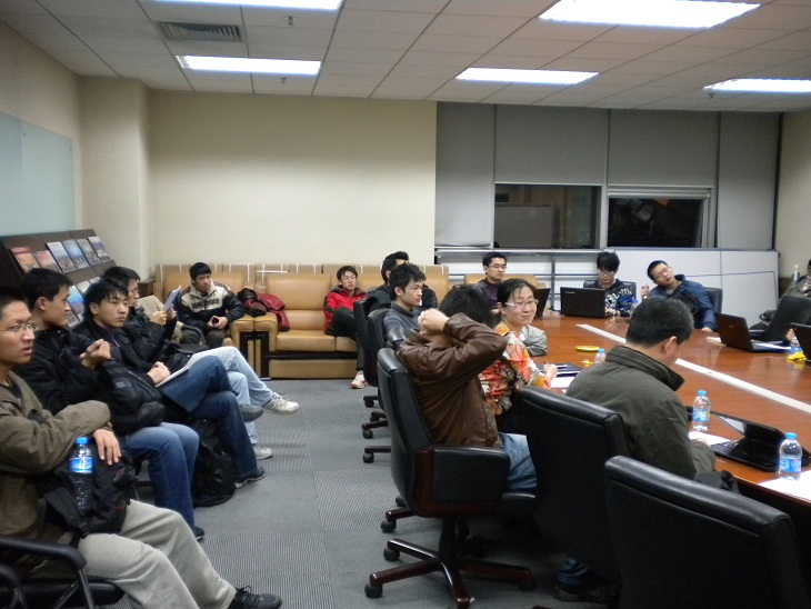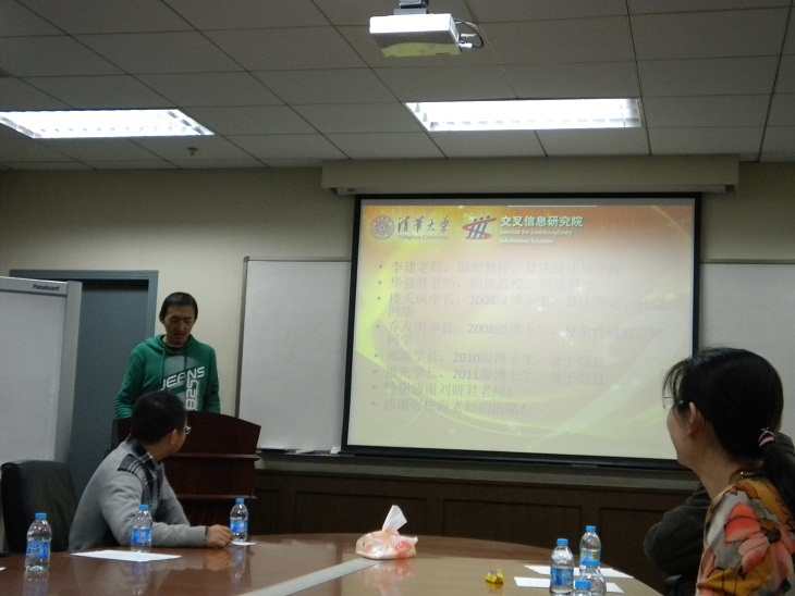 活动开始,各位嘉宾分别向同学们介绍了个人和所在课题组的研究领域。李建老师介绍了理论计算机科学研究方向,并向同学们展示了近似算法、密码学等课题的最新科研成果;华强胜老师的主攻方向是无线网络与算法,介绍了网络科学在与产业界的紧密联系;乔友明、楼天城分别介绍了复杂性和社交网络等研究内容;郑波和祖充介绍了量子信息研究方向的相关情况。这个环节使同学们对我院的研究领域和具体内容有了进一步的了解。