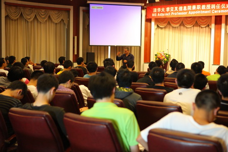 2011年9月29日下午,清华大学交叉信息院在信息技术大楼(FIT楼)多功能厅隆重举办“兼职教授聘任仪式暨图灵讲座第二讲”活动。交叉信息院院长姚期智、姚期智讲座教授段路明等院教师以及来访教授David Culler教授、姚班学生、院研究生共计160余人参加仪式及讲座活动。交叉信息院副院长王跃宣教授主持聘任仪式。