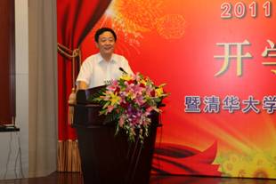 施一公教授、肖杰教授、段远源处长等嘉宾也在开学典礼上致辞,对新生的入学表示祝贺和欢迎。施教授在发言中介绍了国际交叉学科发展的历史及前景,施教授表示,清华大学非常需要发展交叉学科,因为清华拥有强大的学科基础,亟需将这些学科联系起来,以此来寻找创新突破口。肖教授则以其一贯幽默的演讲风范,介绍了学科交叉的重要性,肖教授强调清华汇聚了优秀的科学家,希望同学们努力学习并摆正心态,在未来大放异彩。段处长在发言中指出,清华大学拥有非常优秀的学生,这一点已经能够和世界一流大学比肩,希望同学们在姚先生等杰出科学家的领导下,志存高远、脚踏实地、为学先为人,以诚信、谦虚、坚韧作为人生的宝贵财富。