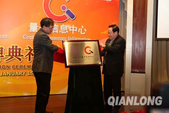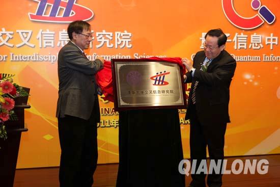 清华大学校长顾秉林和著名计算机科学家姚期智为清华大学量子信息中心揭牌