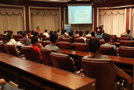 当天晚上,“姚班”2010招生宣讲会在FIT楼多功能厅召开。“姚班”助理张燕老师主持宣讲会,中心副研究员孙晓明,助理教授Christophe Tartary、John Steinberger、Periklis Papakonstantinou以及Kevin Matulef等“姚班”任课教师均在宣讲会上与学生展开互动,介绍了“姚班”的办学特色及课程体系,鼓励并欢迎优秀清华新生加入“姚班”。“姚班”特设的国际化人才培养模式无疑成为宣讲会上的一大亮点。参加宣讲的新生也就“姚班”就业情况等问题向与会教师咨询。宣讲会结束后,陆续又有不少新生填写了报名表。