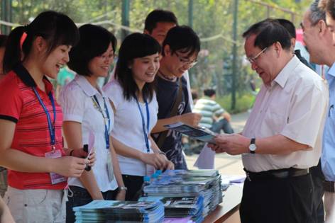 顾秉林校长在“姚班”二次招生点翻阅ITCS的宣传材料