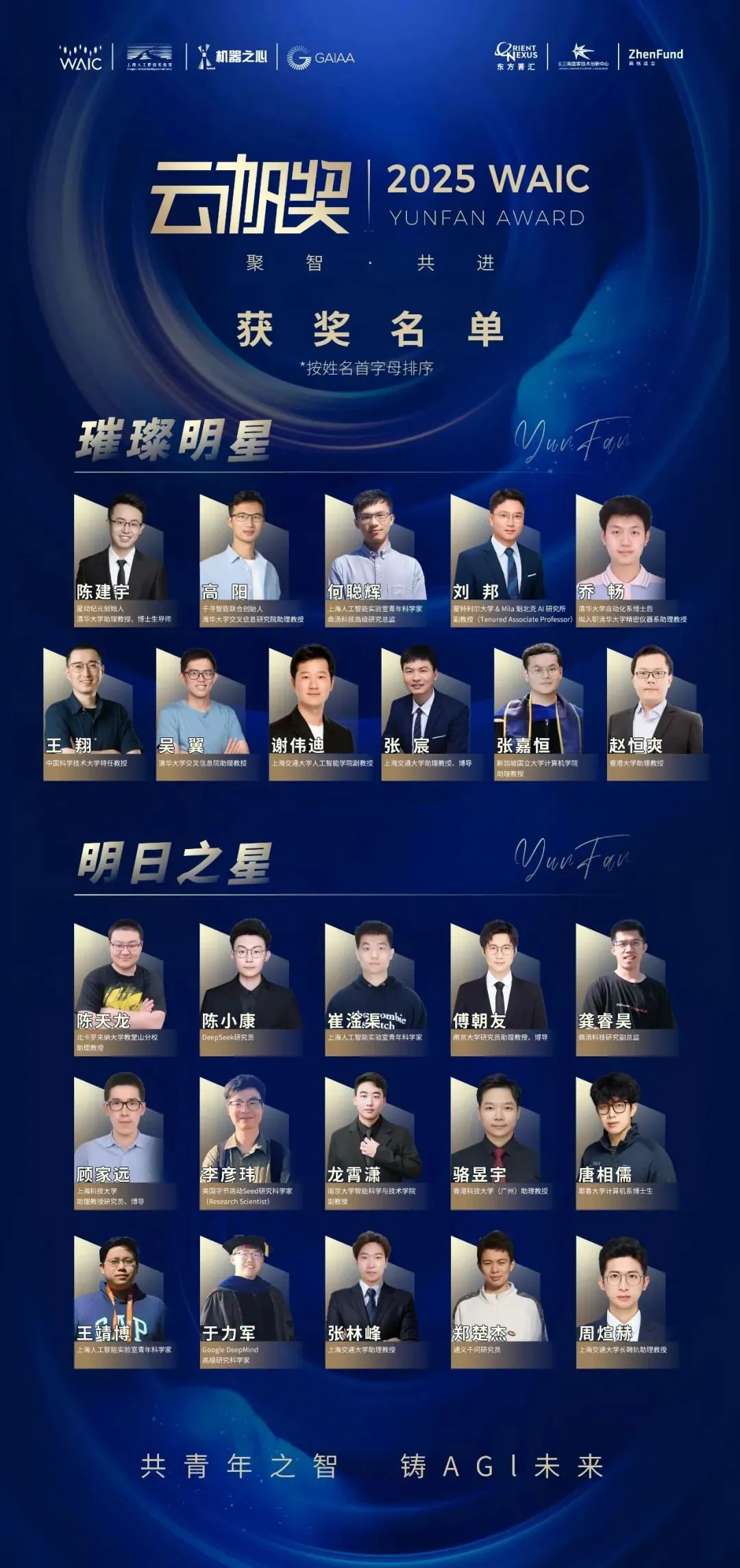 2025年7月,世界人工智能大会在上海揭晓最新一届 WAIC 云帆奖得主名单。清华大学交叉信息院助理教授陈建宇、高阳、吴翼,以及校友张林峰获此荣誉。“云帆奖”创设于2020年,已成为全球最具影响力的华人AI青年人才奖项之一。