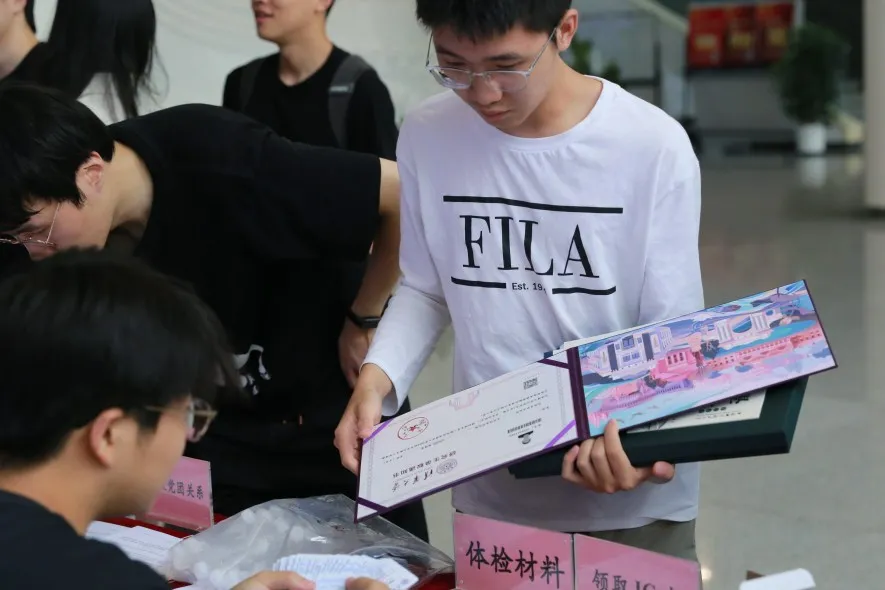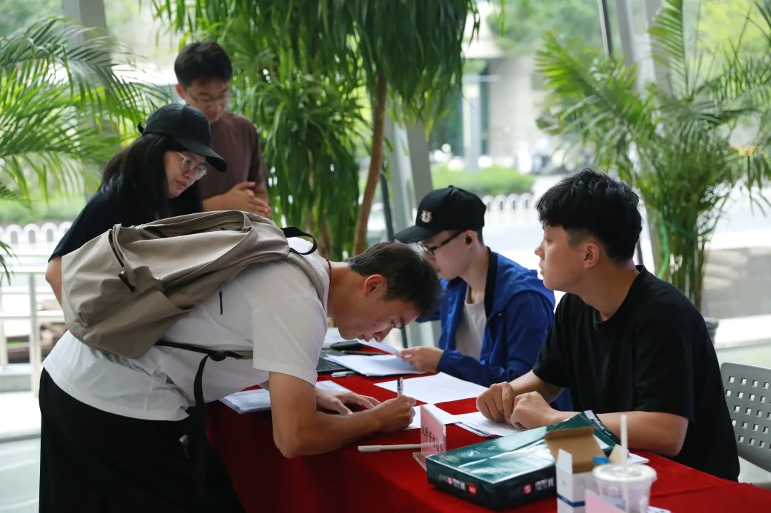 交叉信息院研究生工作组的迎新点位于信息技术大楼一层大厅,热闹温馨。2025级研究生新生对未来的科研之旅充满期待,纷纷发表感言。