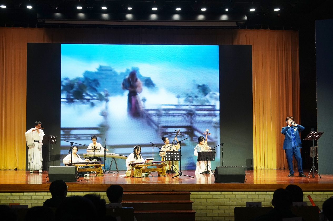 计科9字班校友王涵、2022级博士生刘雨玚、计科31班赵梦洁、计科33谢轩奕等七位演奏者以传统民乐演绎《西游记组曲》,用东方音韵再现波澜壮阔的取经传奇。