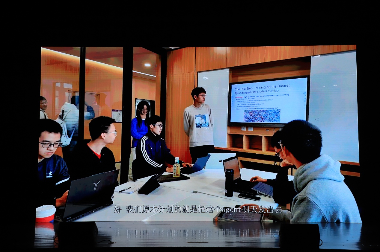 节目伊始,2023级博士生骆晗、计科23班蒋金辰、2022级博士生刘雨玚、计科33班秦祉恺、计科22班田心洋五名主创登台带来现场版主题曲《为了此刻》。歌声传递出“探索是为了此刻,活的足够真切”的深刻内涵。