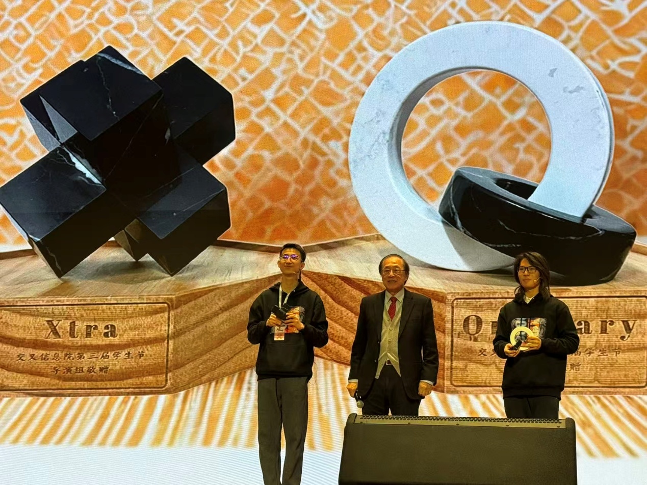 随后,学生节导演组向姚教授献上寓意深远的礼物。大理石“X”代表着勇于开拓、全面探索的创新精神;大理石“O”则象征着专注有序、在特定领域深耕不辍的治学态度;而由“大O”引领“小O”构成的图案,生动喻示着师长引领学子、传承薪火的精神。这份礼物诠释了“开拓创新”与“专注深耕”二者兼济的学术追求。