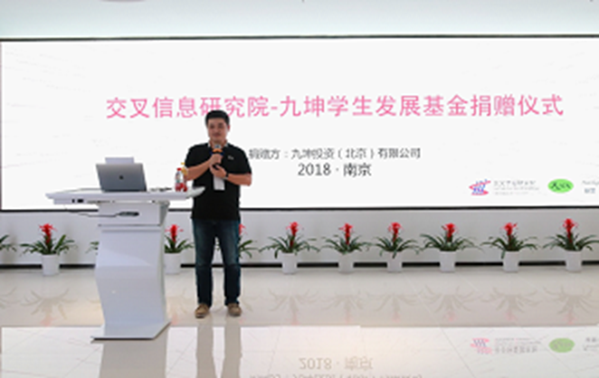 落成仪式暨校友捐赠仪式上,交叉信息院校友、08届博士毕业生、九坤投资总经理王琛代表九坤投资(北京)有限公司捐赠设立交叉信息研究院—九坤学生发展基金,将持续助力交叉信息院学生发展,支持图灵研究院学生实践创业项目。